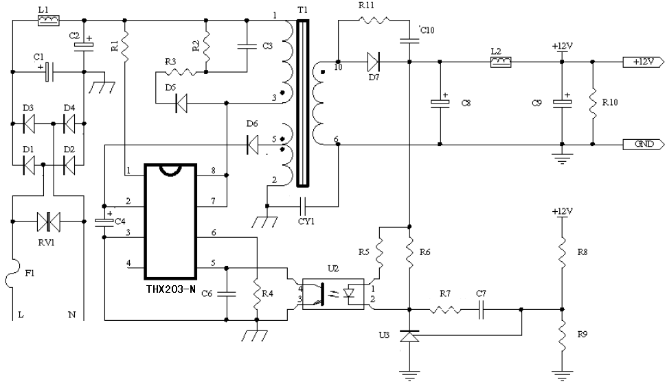 內(nèi)置700V(-8V為800V)高壓功率開(kāi)關(guān)管,極少的外圍器件